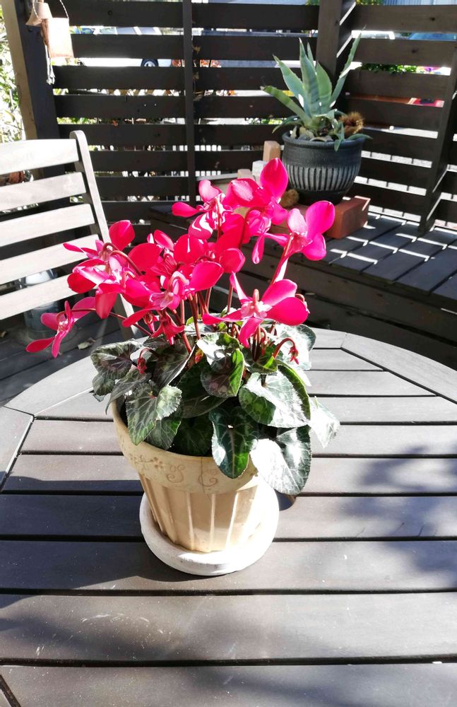 p.2 先日 ご近所さんちで 手作りランチご馳走になったとき ウッドデッキの シクラメンとアガベが太陽☀️の光でとっても素敵✨でした