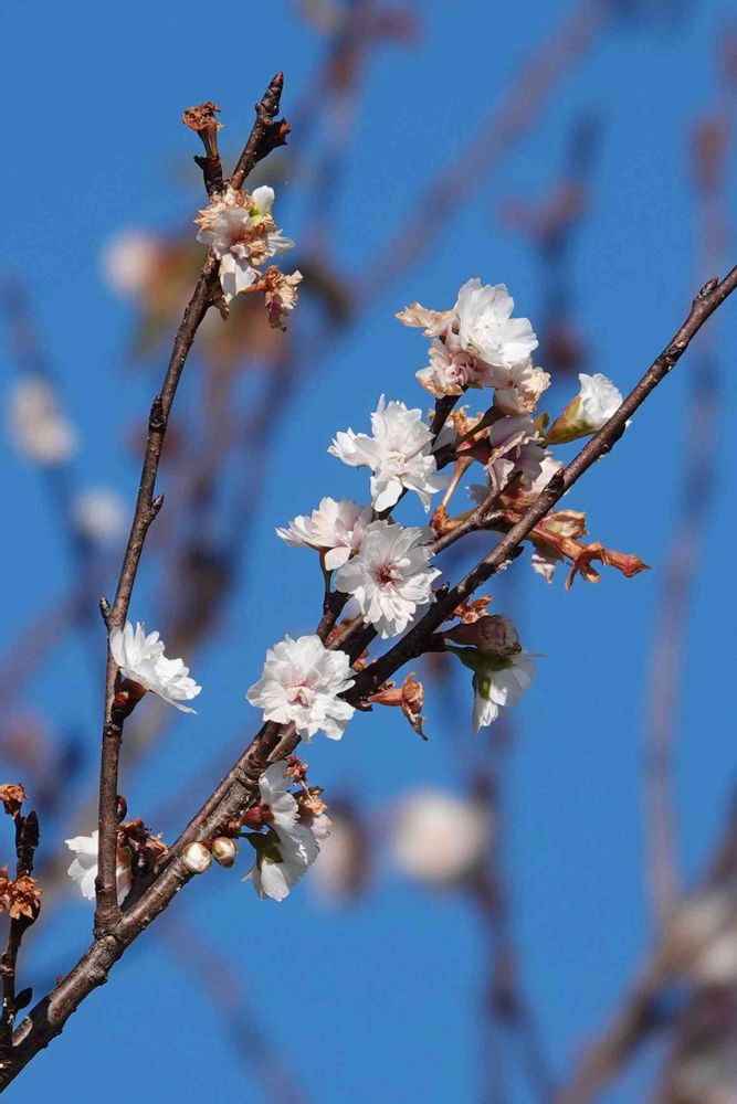 自然大好き派😘です。探鳥会に新しい公園に出かけたら2期咲のこのサクラ🌸が咲いていました。春と秋の二回咲く品種です。コブクは子福で、一つの花からサクランボが2つもしくは3つなることでこの名前になっているようです。サクランボの頃に来ないといけないですね😅。