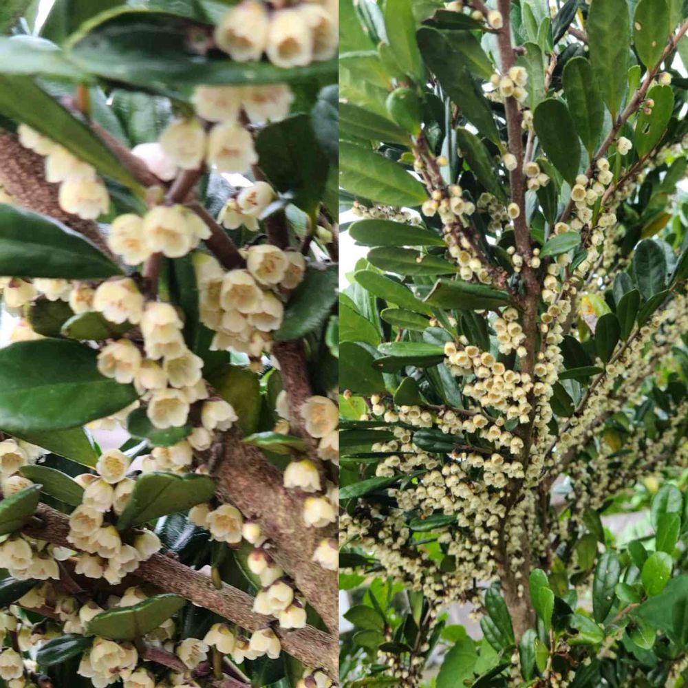 ラマヒサカキの花が 枝の裏にぎっしり花が咲いてます✨