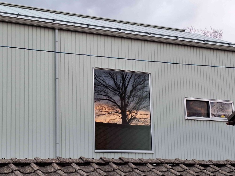 北向の窓なのにと光の方を見てケヤキが映り込む事に気がついたんですよ😆✌️