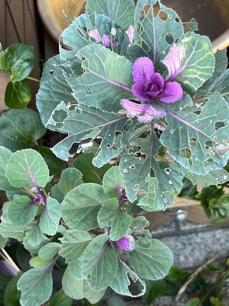 一昨年の葉牡丹です。虫さんに食べられて穴ボコだらけです。😅💦