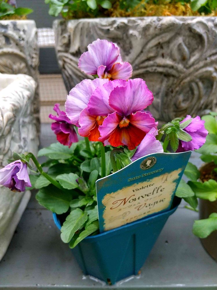 濃いめのピンク×オレンジのヌーベルヴァーグを買ったので錆びてしまったブリキ鉢に植えました💕