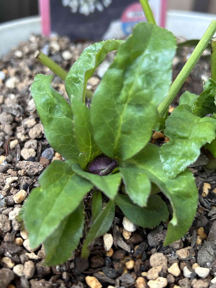 他のクリスマスローズに先駆けて「ブラックパール」のツボミが出てきました。
