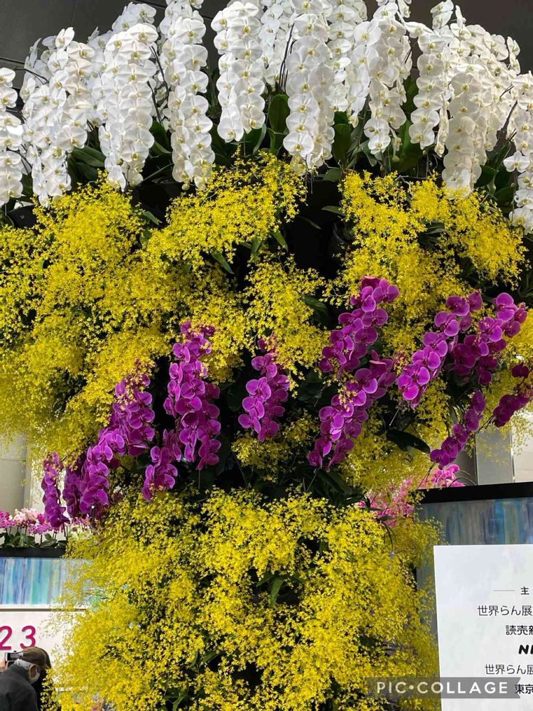 胡蝶蘭やシンビジウムなどを弾き立たせるかのように周りをオンシジウムで埋め尽くし、一層華やかに演出しています