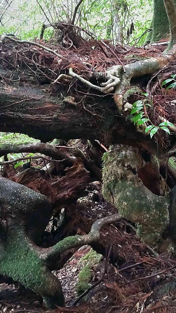 花崗岩の島で土壌が薄く、栄養分の少ない屋久島の森、倒木した杉は、そのまま残され次世代に受け継がれていきます。🤔🤔