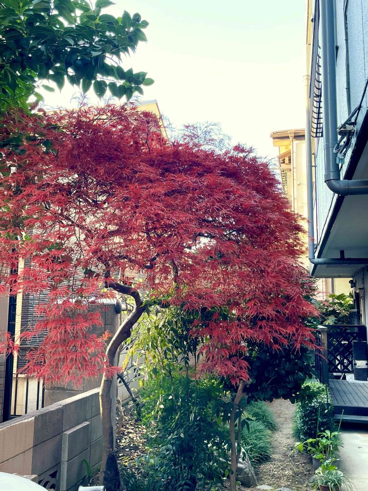 ご実家の楓🍁素敵に色づいて美しい上、枝のカーブもステキです💓