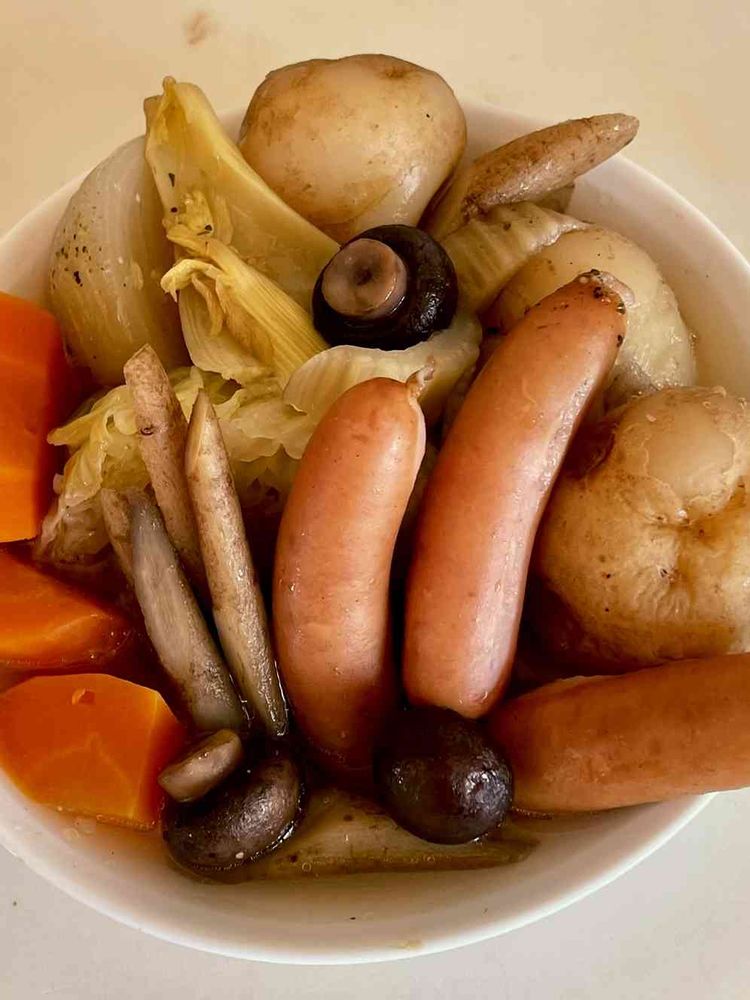コンソメの素はたっぷりと 味付けは塩胡椒で あとはウィンナーからの肉の旨みで う〜んいいお味😋❣️
