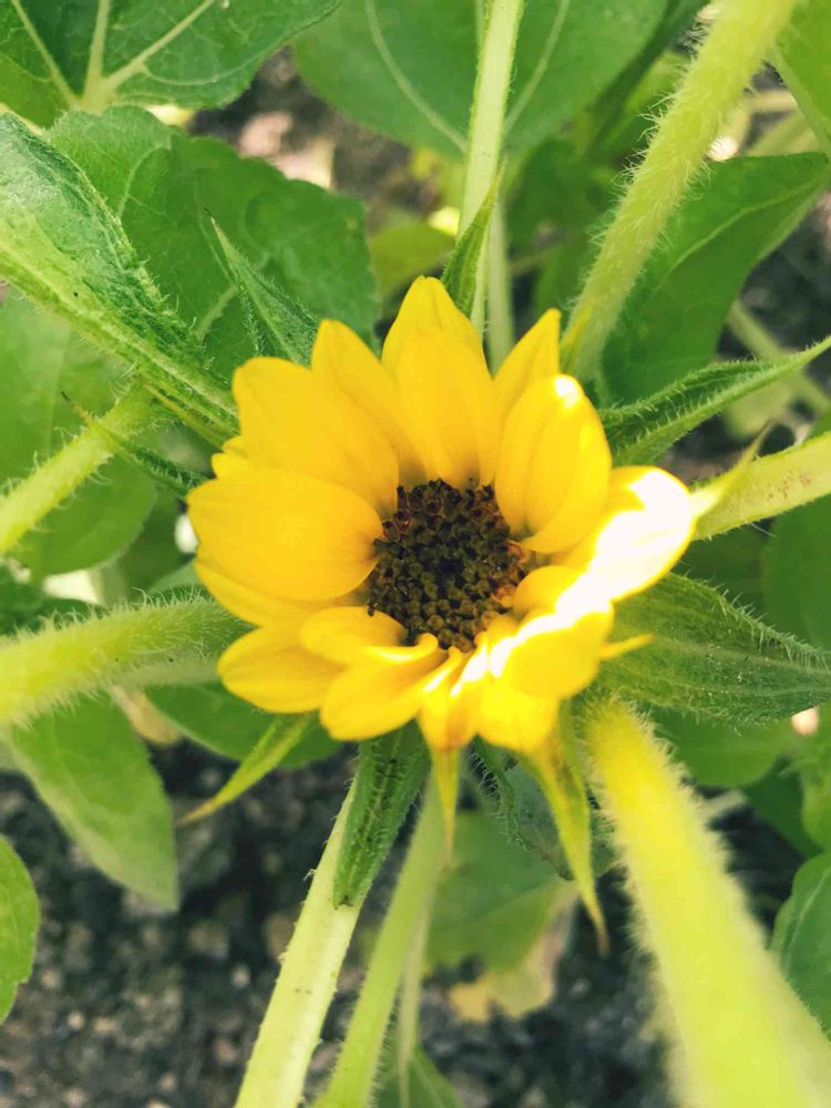 なかなか花が咲かないなぁと大きくなった葉っぱを分けていると隠れて可愛く咲いていました😊🌻