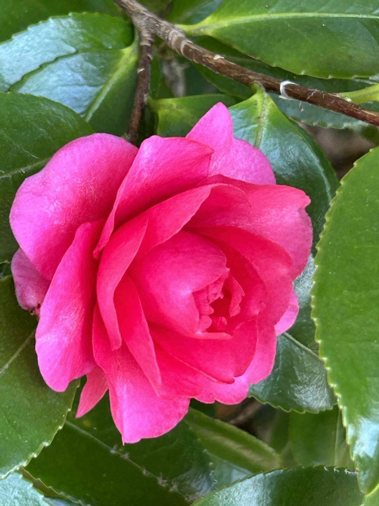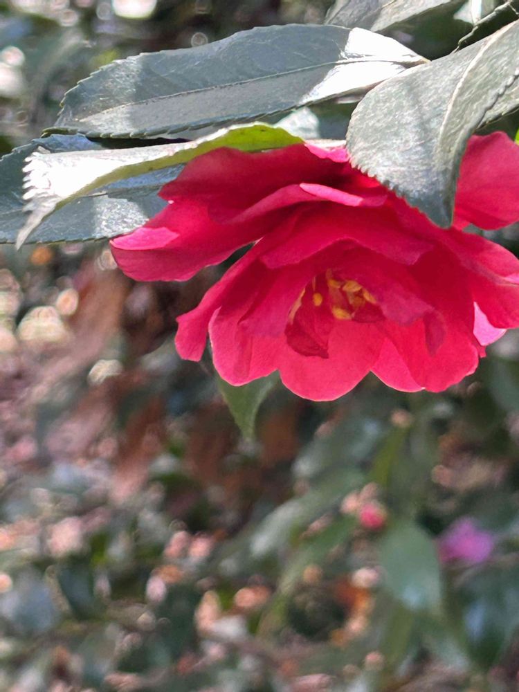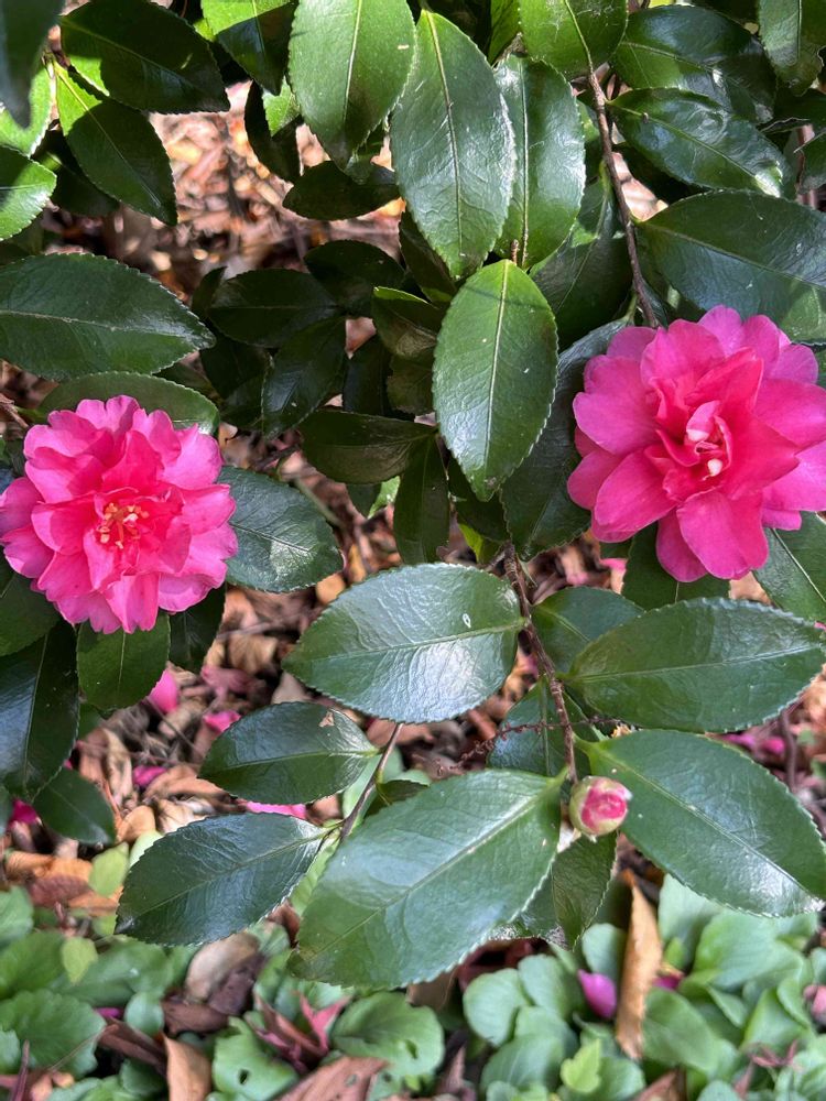 いつもの散歩公園でシシガシラ(カンツバキ)が咲き始めました🤗