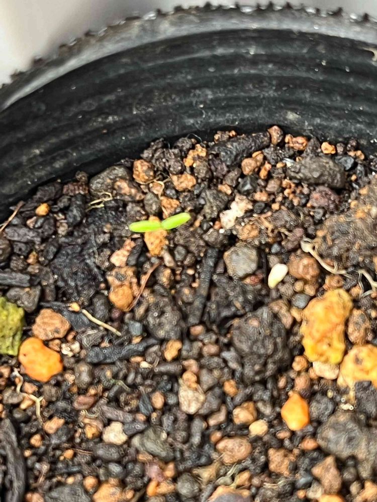 おはようございます。曇り、10.0℃、9:30寒い。アロマティカス、今年は元気に越冬できそうです。食用ホオヅキ、未熟の実から採った種、試しに蒔いてみたら18日目に発芽しました。来年も栽培してみます。😻🥰😍😸😋☺️