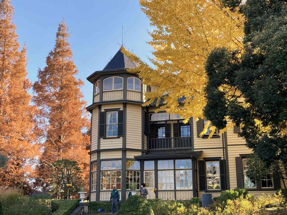 イチョウとメタセコイアの黄葉が美しい山手の洋館、外交官の家です。