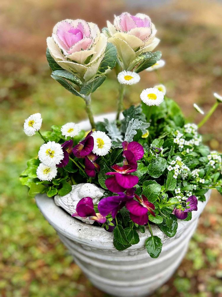 のっぽの葉牡丹なので、背の高い鉢に寄せ植えしました🍀*゜