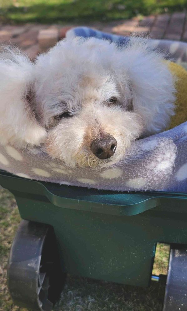 以前はデッキを自由に歩き回っていたのですが、目が👀あまり見えなくなってからはお外に出るのが不安みたいで💦