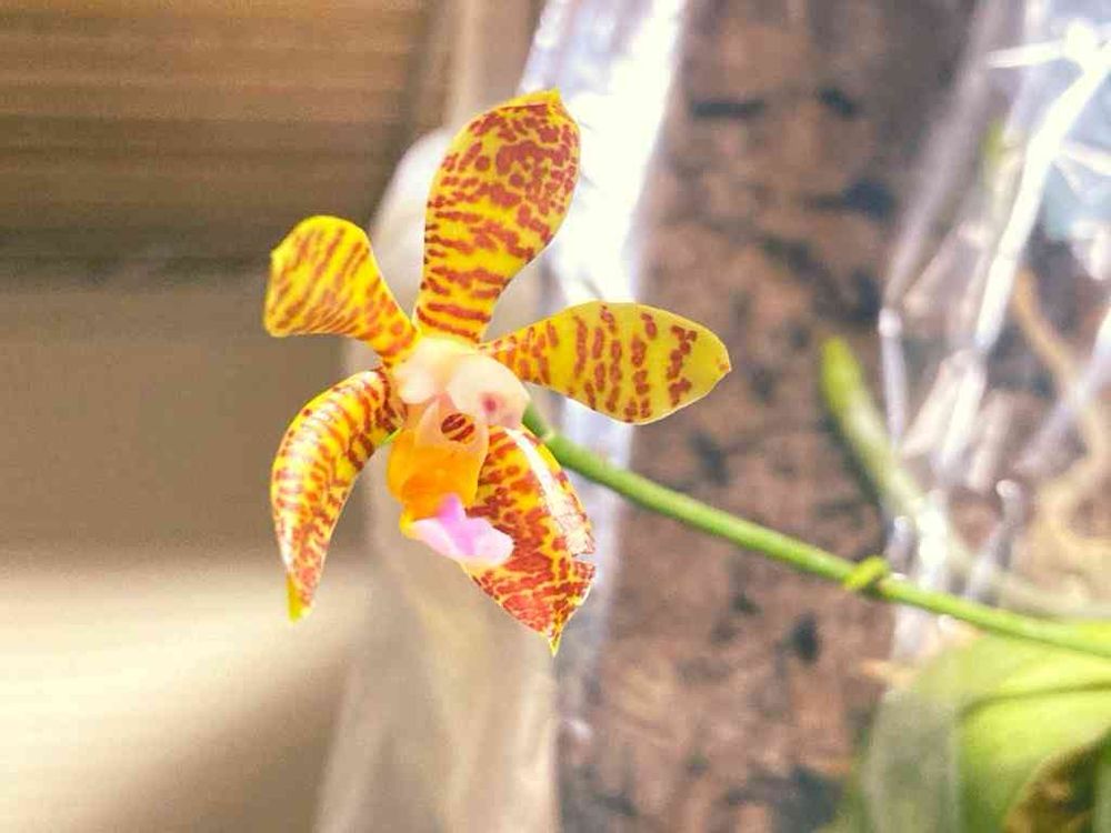 ファレノプシス・ファッシアータが一輪だけど開花した。