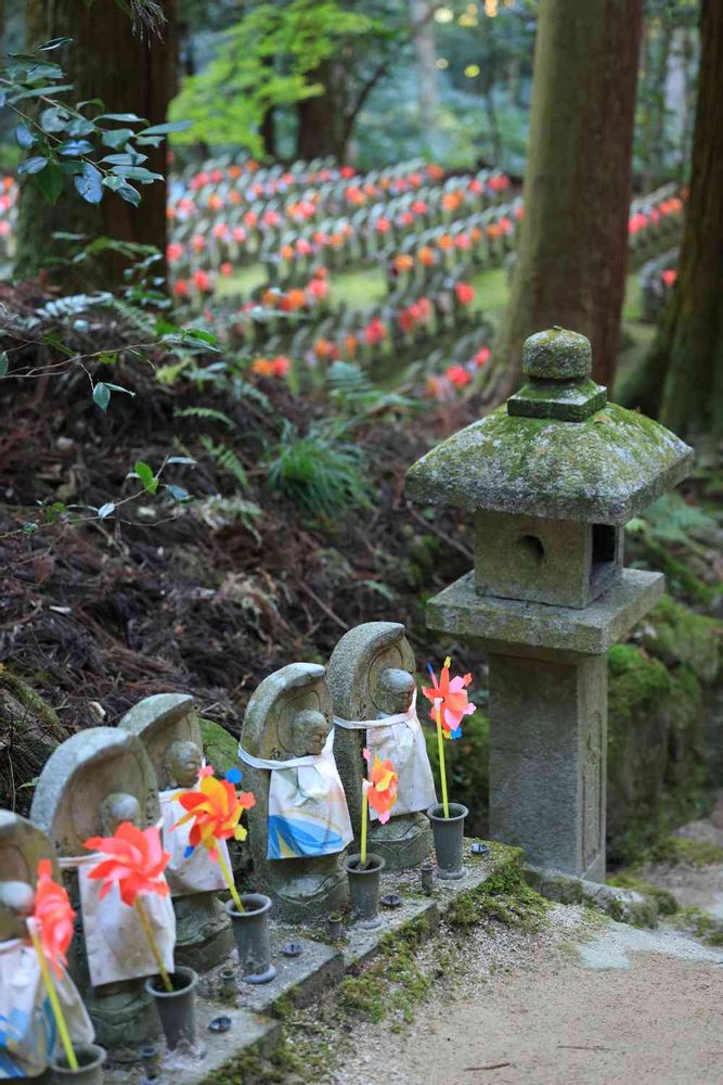 全ての地蔵が色とりどりのよだれ掛けをしています。