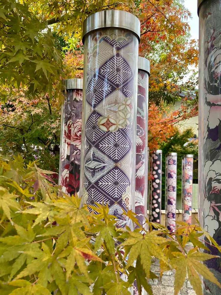 嵯峨嵐山天龍寺 紅葉🍁と着物反物筒オブジェ