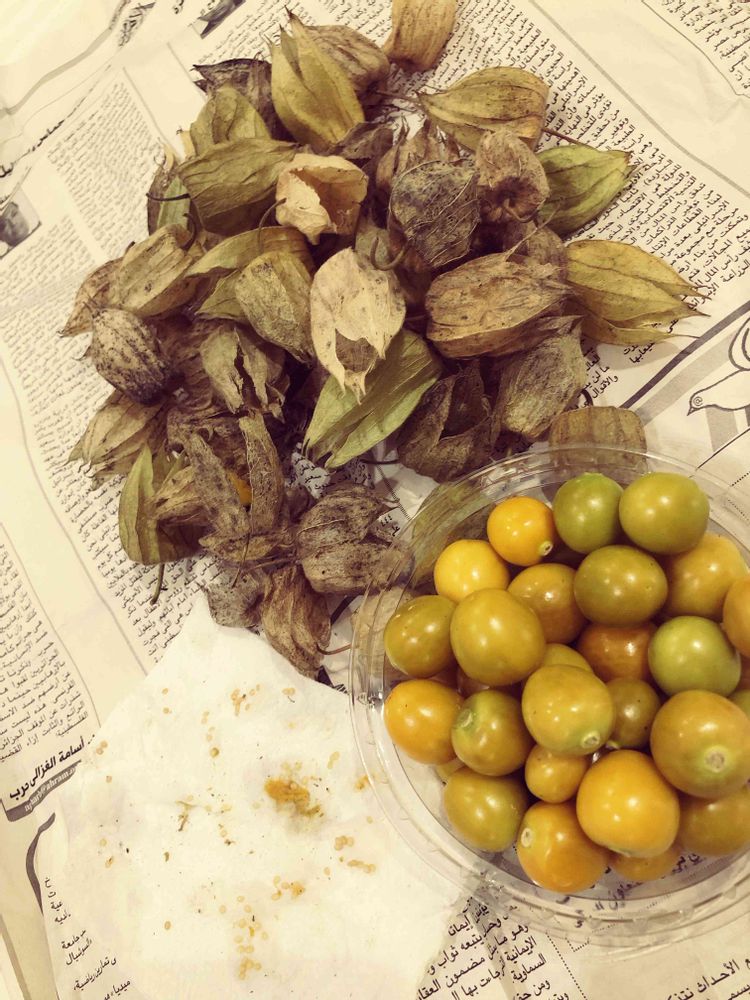 旅行先のエジプトで荷車で売ってるホウズキ(1kg 286円)を250g(71円)買ってホテルで身と袋(?)に分けた🇪🇬