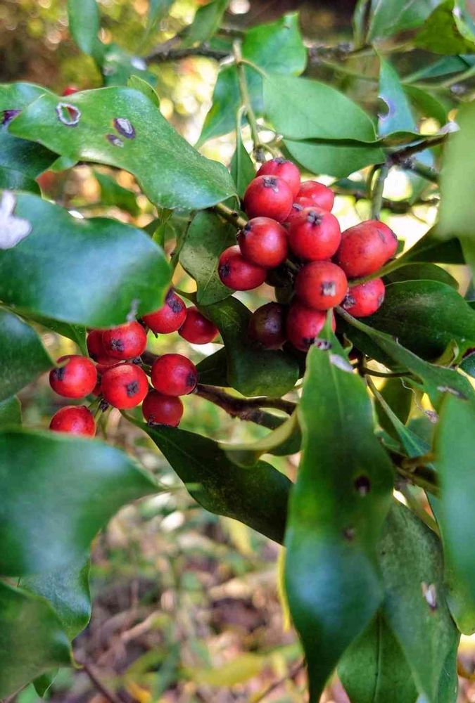 赤いモチノキの実が沢山実って可愛いです🔴🌿