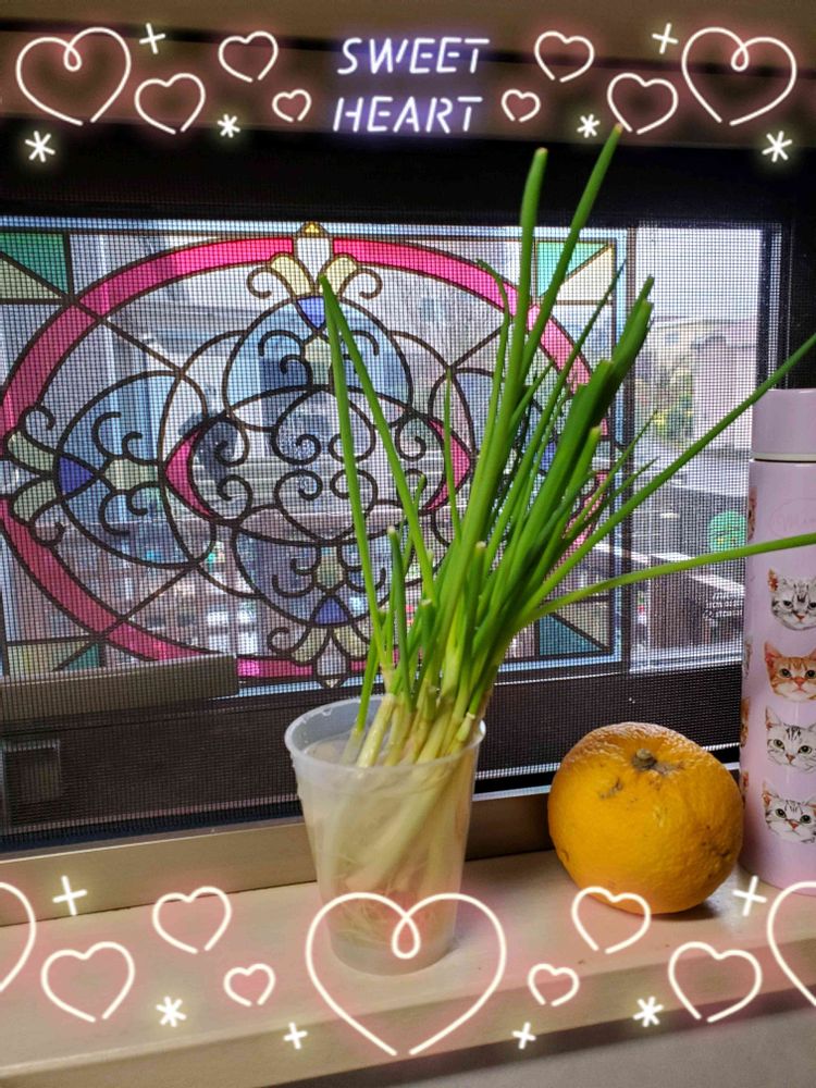 我が家は植えてないから、キッチンに置いた、使った根っこから出た小ネギ🎵