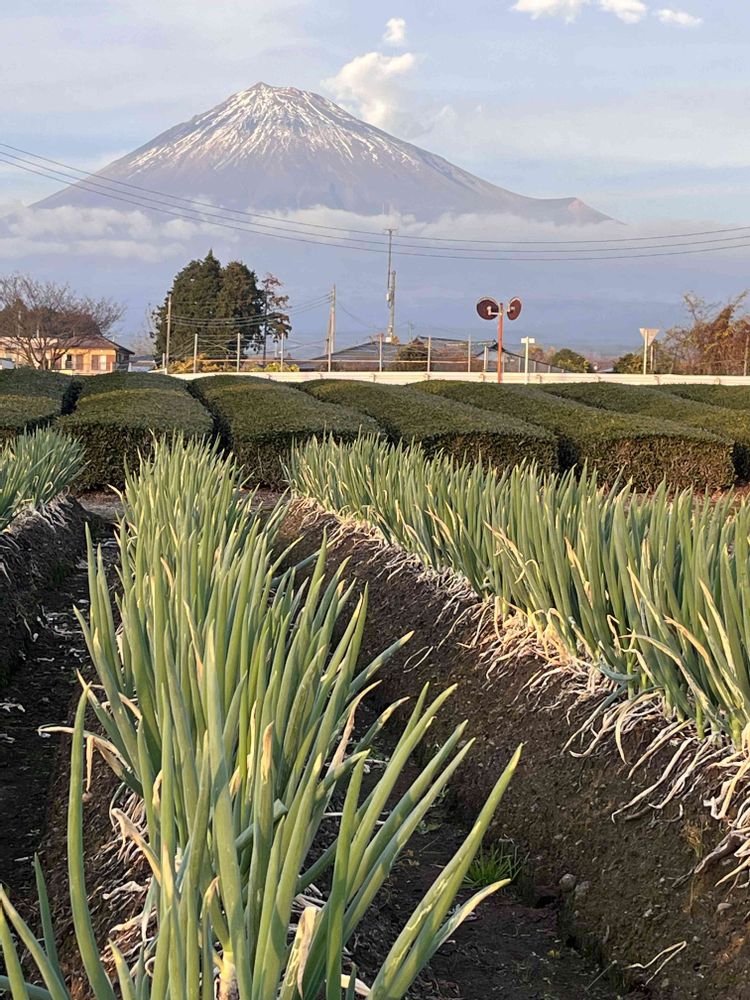 富士山🗻とのコラボはもちろんですが、お日様とこコラボ煌めく空に映えるネギ畑とっても美しいです✨✨