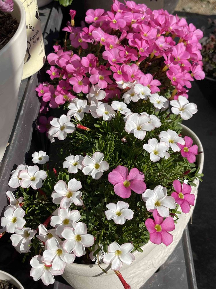 最後の混じっちゃったオギザリスさんたちのプランター、とたも可愛いですね(ノ≧▽≦)ノ。我が家も白いオギザリスさんたち、ようやく咲き出しました😊