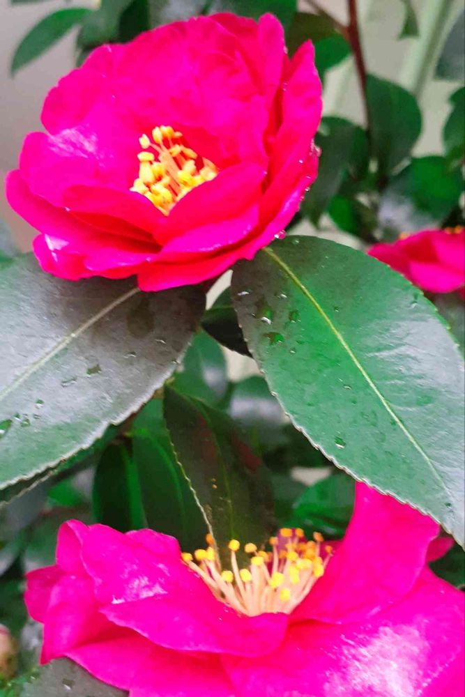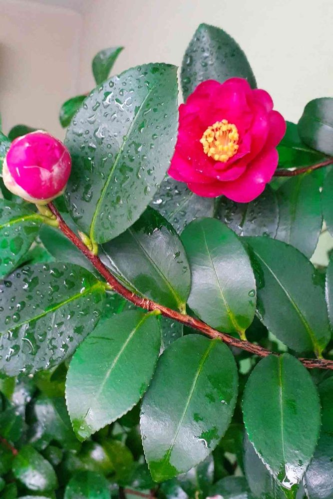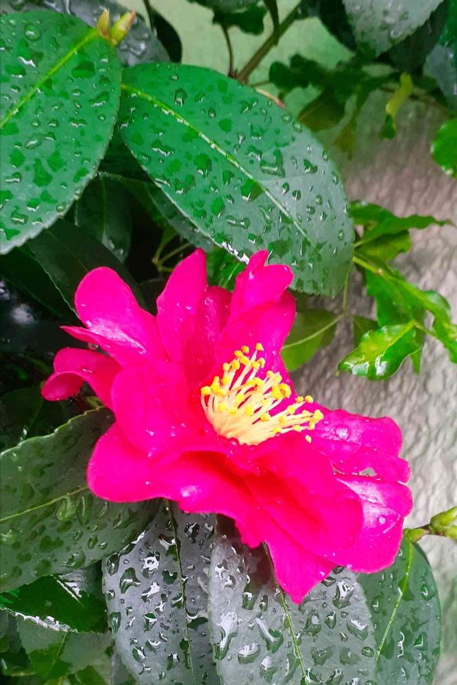 雨に濡れたサザンカもステキですね〜