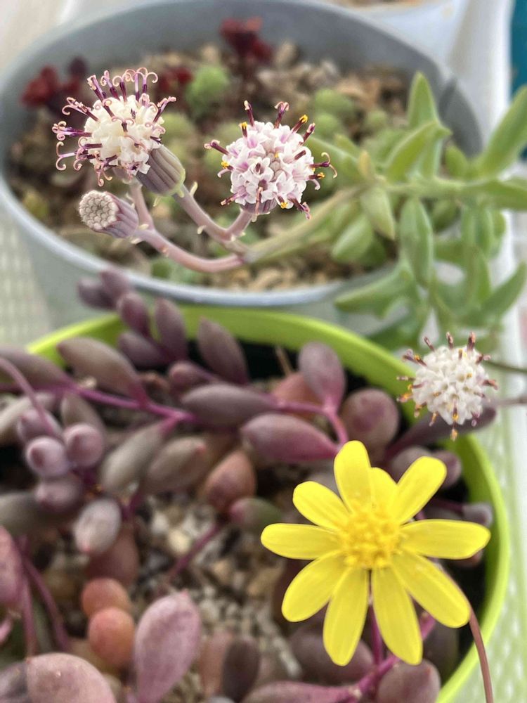 うちのは、先祖返りをしていてずっと七宝樹とグリーンネックレスのようになっていたのに、また🐬が復活したと思ったら花をつけ始めました☺️