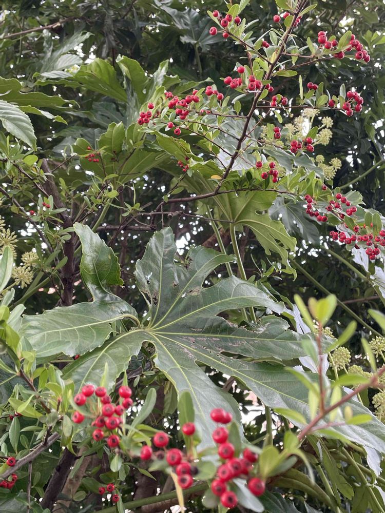 2枚目はヤツデの葉です。一緒に写っている赤い実はなんでしょう?