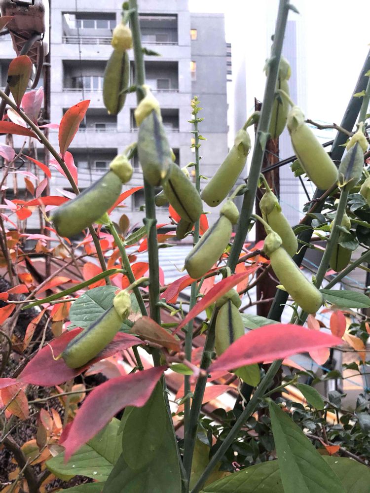 サヤがもっと乾いて中のタネが弾け飛びました😅硬くてツヤツヤしているので取っておきました。土に混ぜてしまったのが