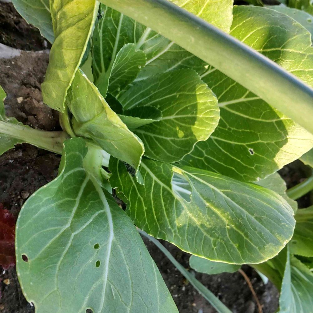 ほうれん草は年末には使え無さそう、成長がゆっくりのぶん葉は厚そう、チンゲン菜はバリバリで固そうに見えます。