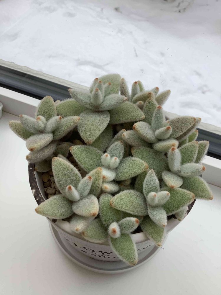 可愛いさ満開の福兎耳さん。🐰このまま大きくならないでー。これは数ヶ月前に切って仕立て直しした鉢です。✂️今日は雪が5センチ以上積もりました。⛄️