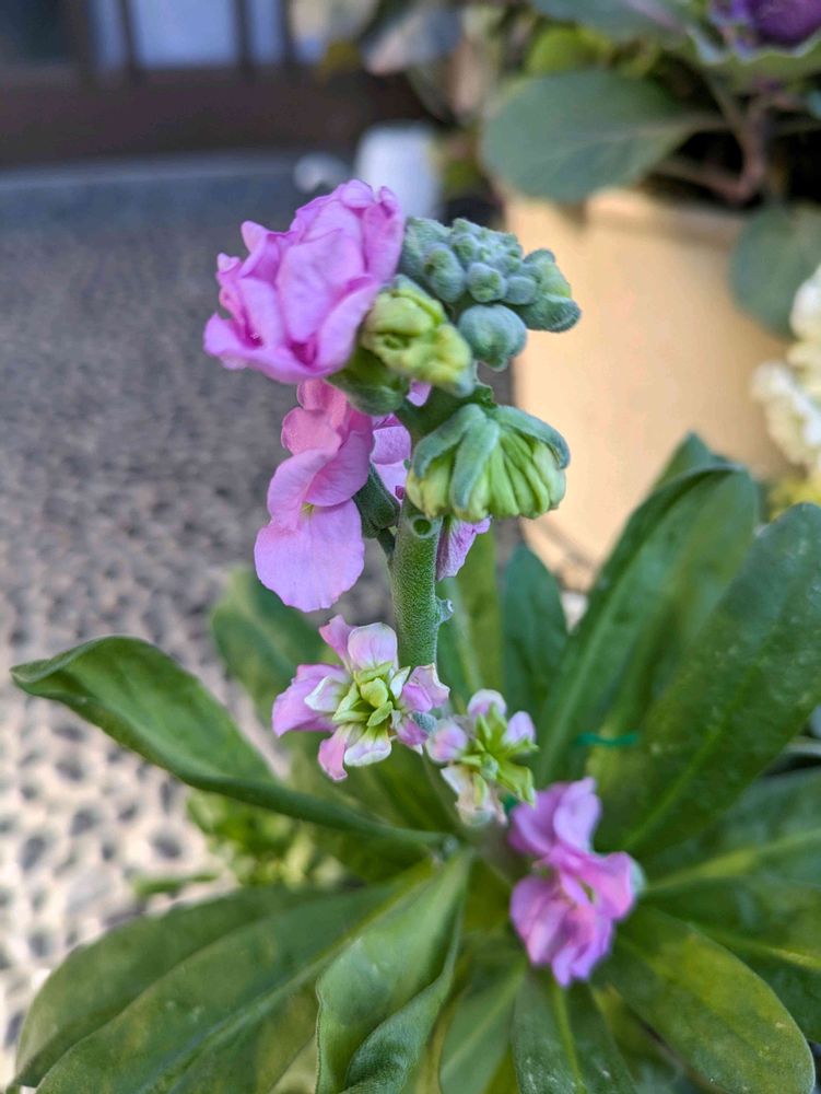 寄せ植えのストック咲きました😍