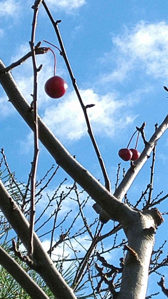 青空に姫リンゴの🔴とてもきれいです✨✨😊✨✨🎶