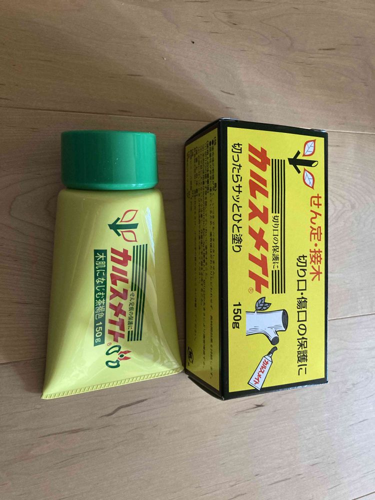 割り箸を使い、この前切った枝の根元に塗ってみました。