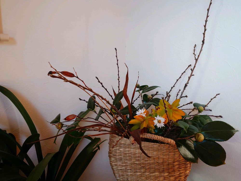 剪定した花桃や枯れた紫蘭と一緒にバスケットへポイっとしました