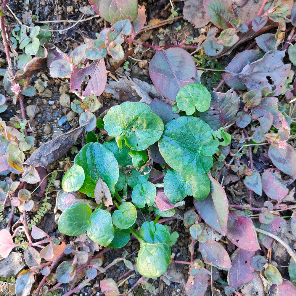 ヒメツルソバの間から今年も葉が出てきた やれやれ〜トイレから出てよろけると踏まれていたのに丈夫なものです