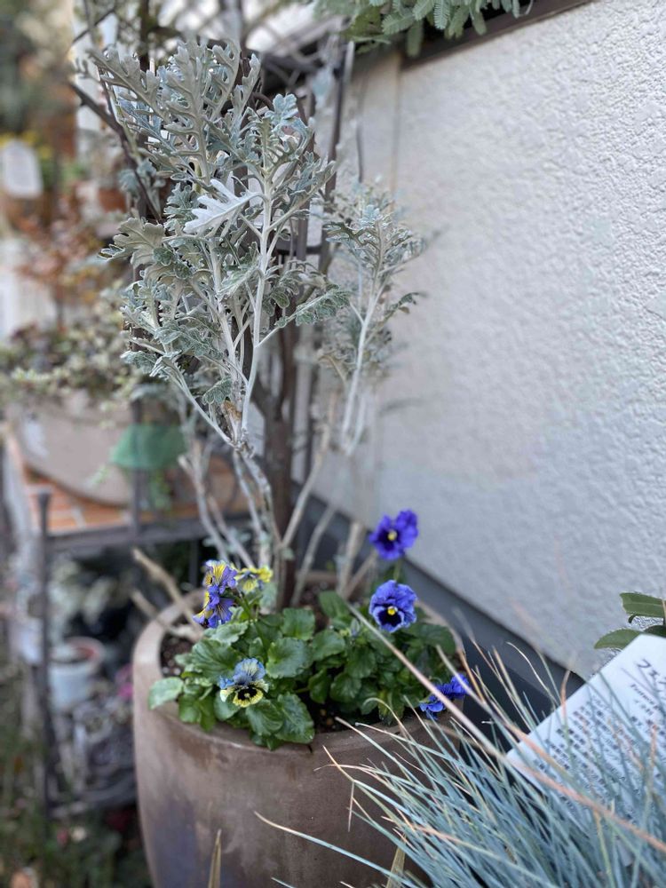 ミモザと白妙菊の足元が寂しいので、道の駅で買ってきた お安いけどなかなか素敵な子を植えてみました(*Ü*)ﻌﻌﻌ♥