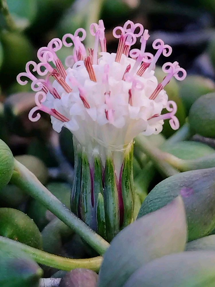夕暮れ時の セネシオ・エンジェルティアーズ錦さんのお花さんのくりんくりん😻🤍🩷💚