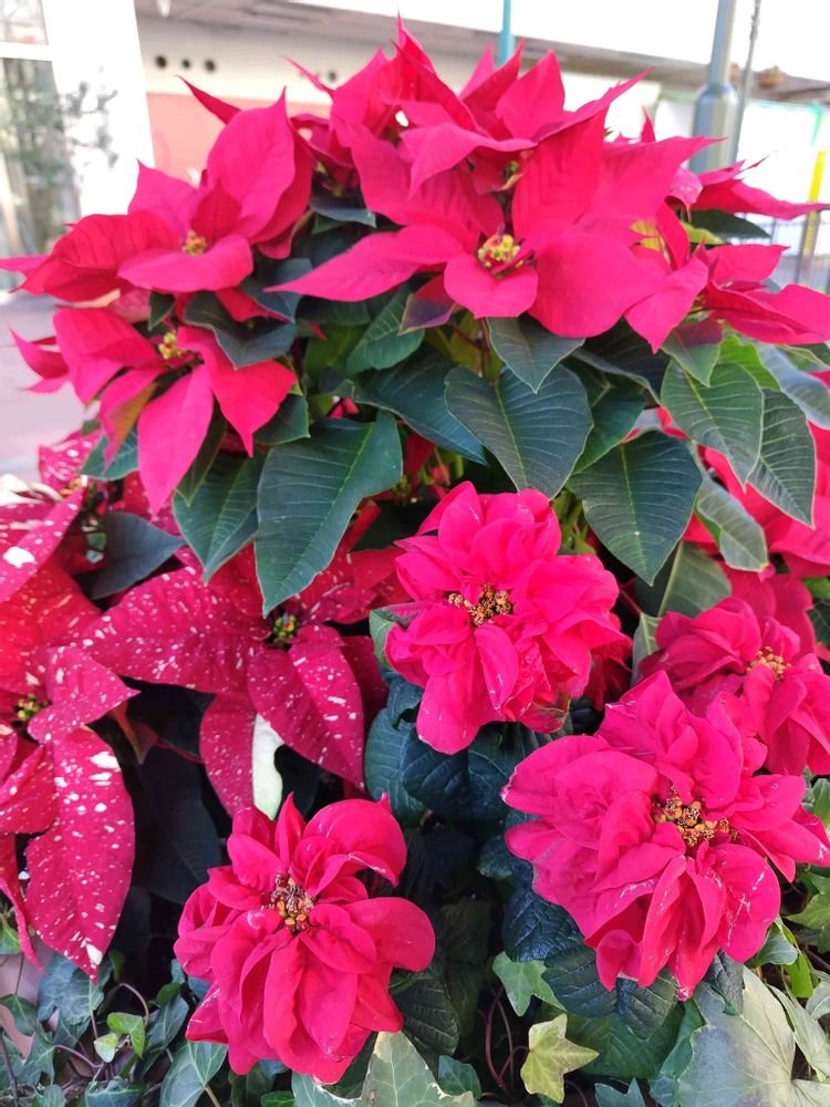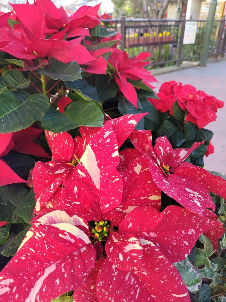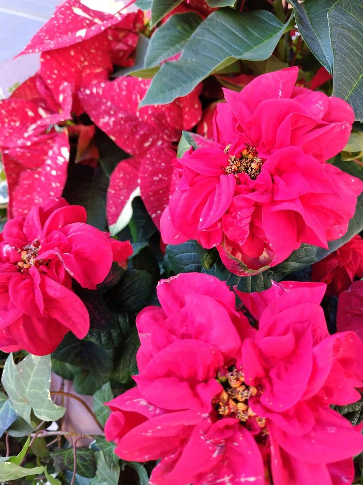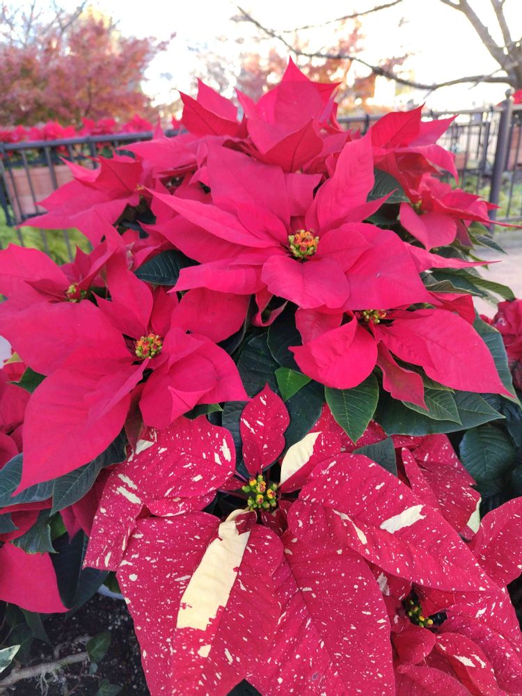 真っ赤なポインセチアとふいりのポインセチア、どっちも素敵ですね🎵綺麗ですね🍀😌🍀