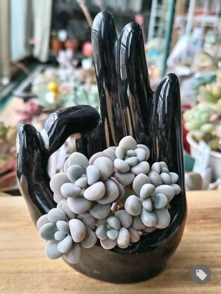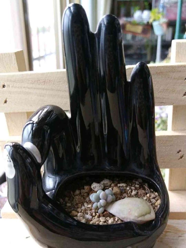 名無しちゃんですが、以前黒い手の鉢で育てた葉挿しちゃんです✋