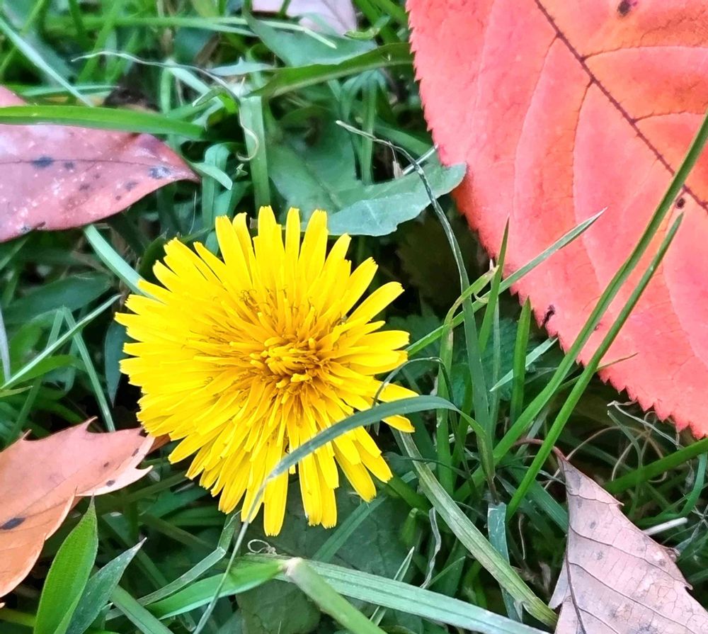 散歩していると足元に黄色🟡!🍁した落ち葉の横にまさか?