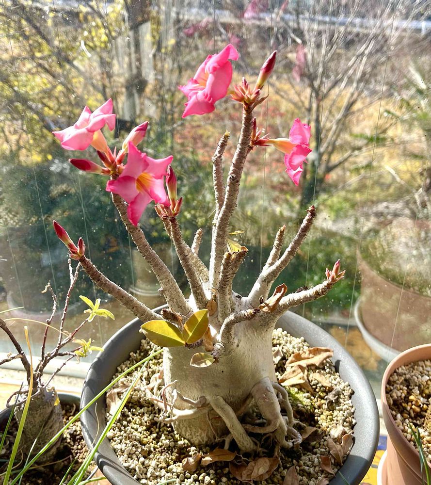 葉っぱが枯れ落ちたのに花が次々開花中のコータローくん。