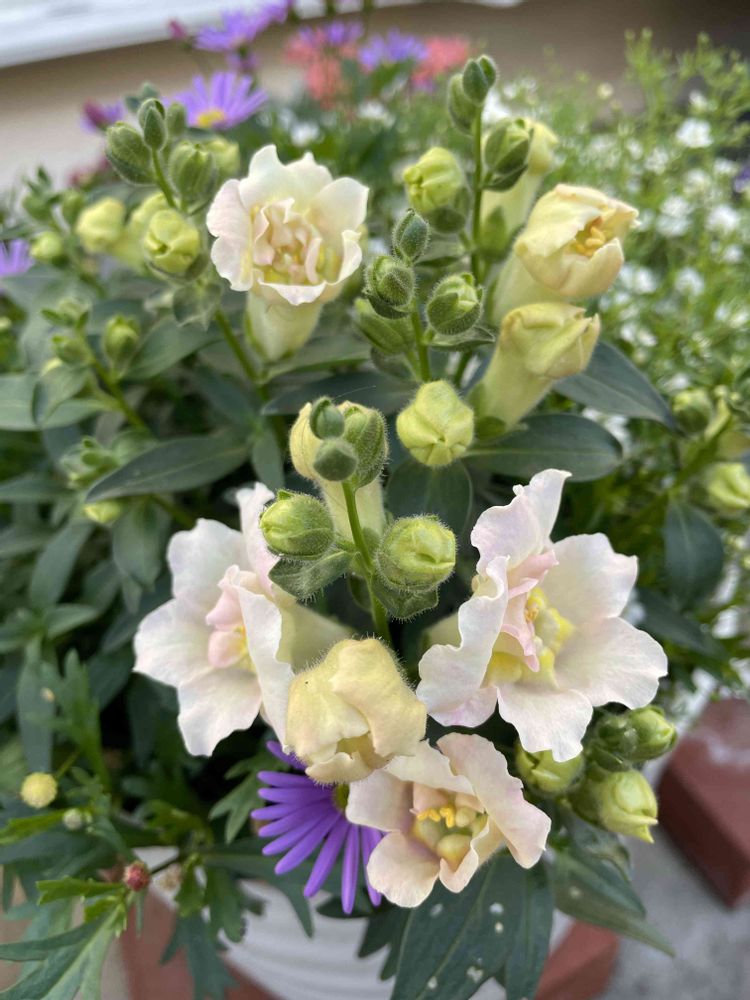 12月に入り、寄せ植えの金魚草トゥイニーがふんわりと開花♪