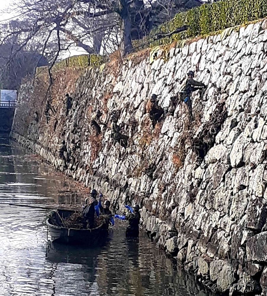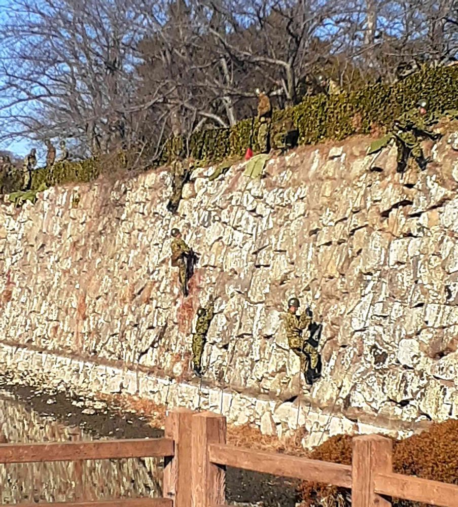 それにしてもお城にフィギュアの自衛隊さんが登ってるみたい🤭