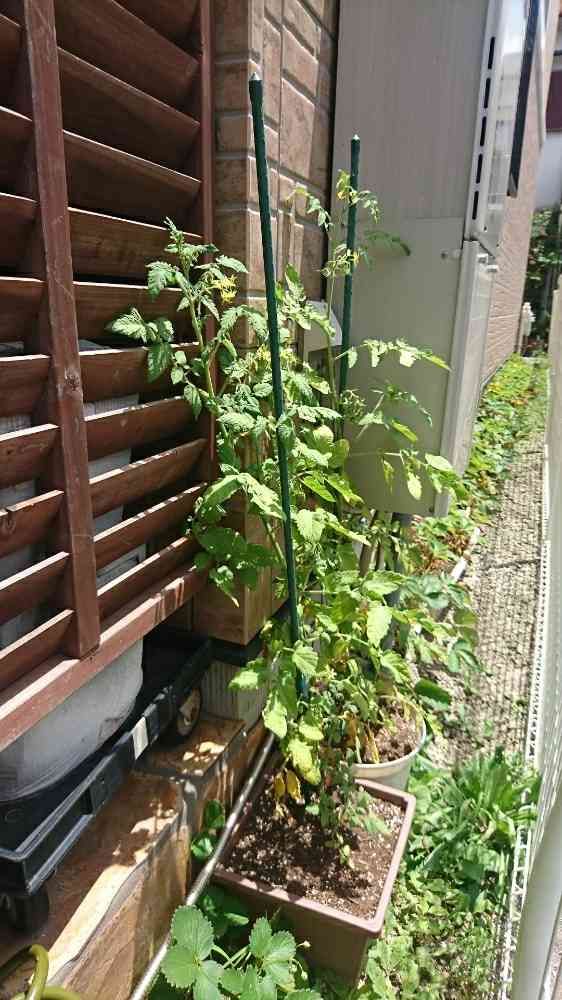 まぶしい日差しのもと、すくすくと、育ってます🍅