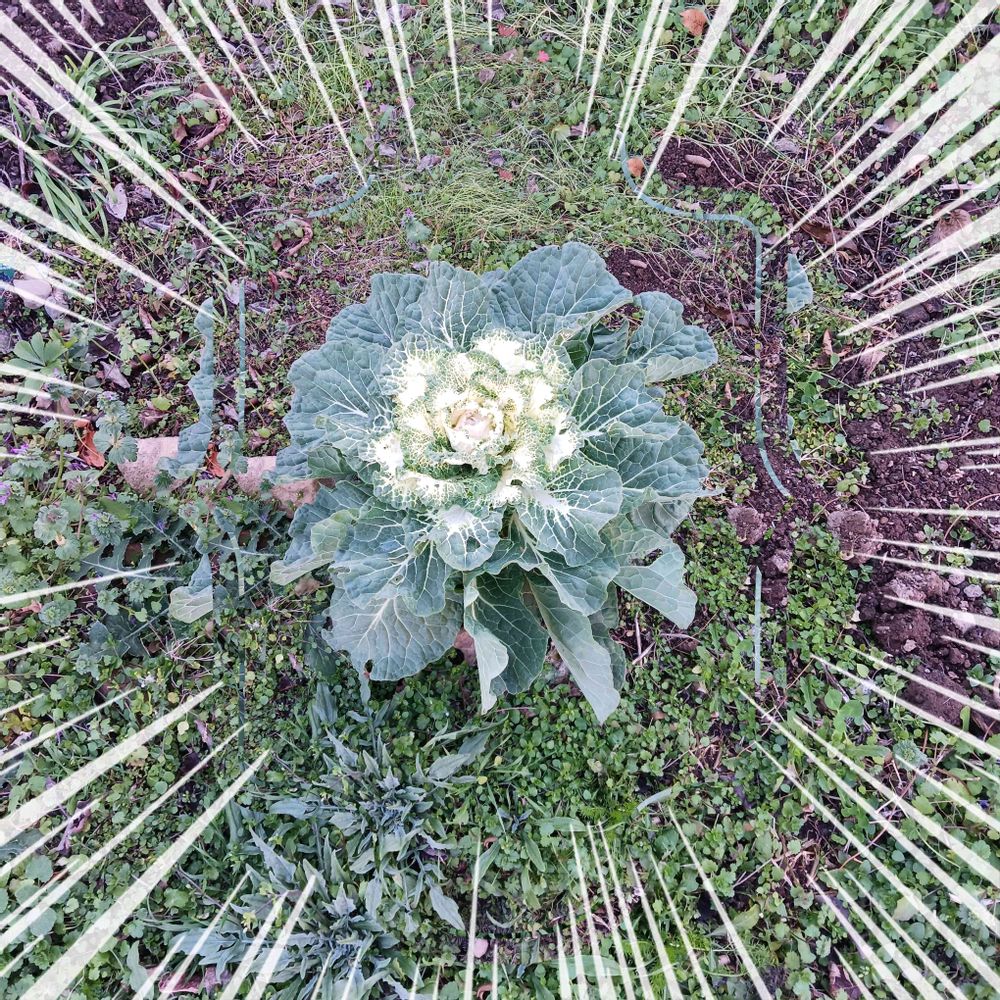 横から生えてきた 芽キャベツも 白髪になってるの😅