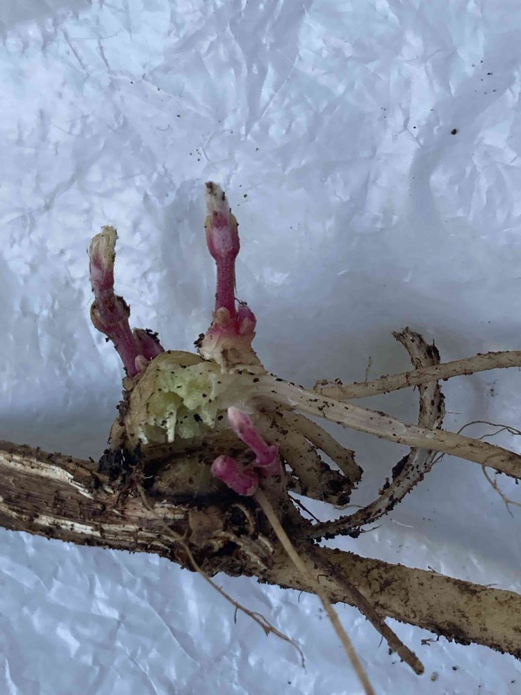 土の中でも綺麗なピンク色の芽で思わず写真撮っちゃいました