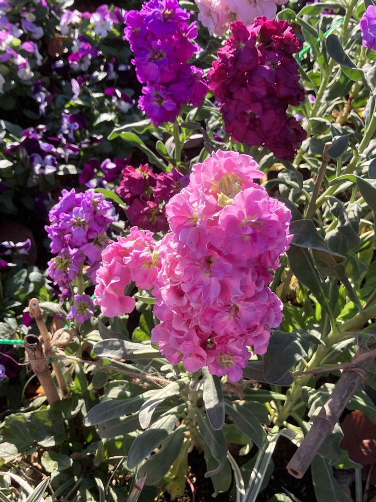 公園の花壇で、ストックだけで2列に植えてある所があり白🤍紫💜濃いピンク💖と薄いピンク🩷と交互に並べてあって見応えがありましたよ😊