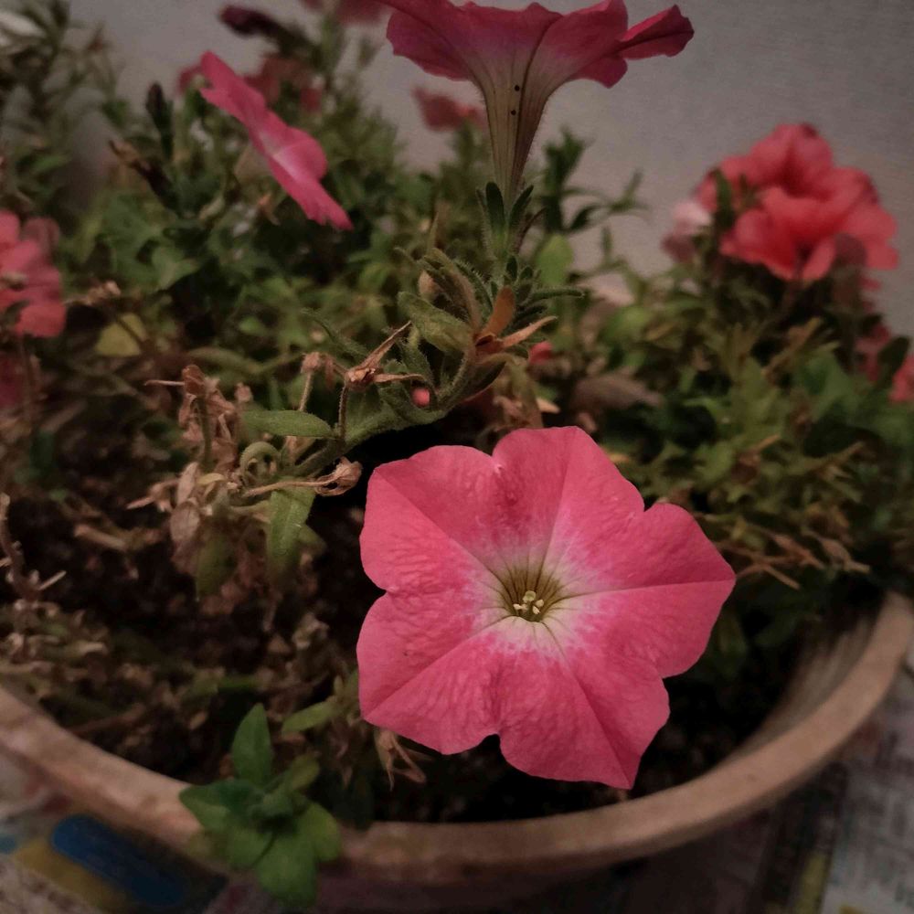 冬越ししているペチュニアさんが元気に咲いています🥰