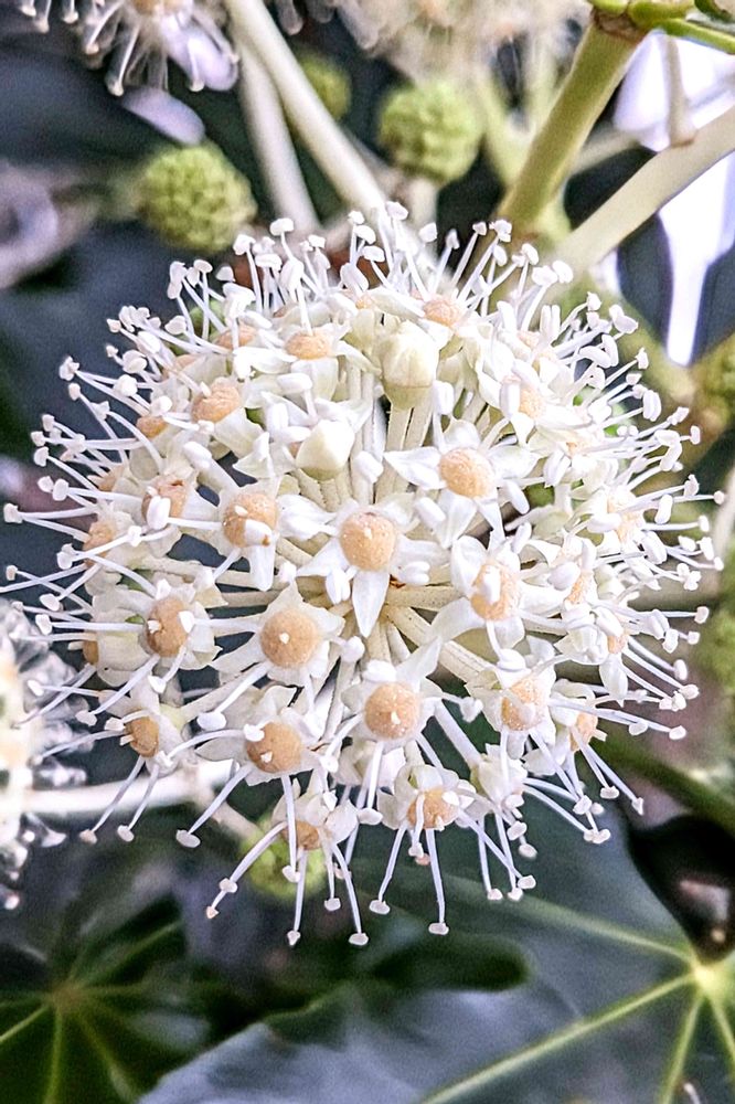 ヤツデのお花 アップで見ると シベいっぱいで美しいですね。